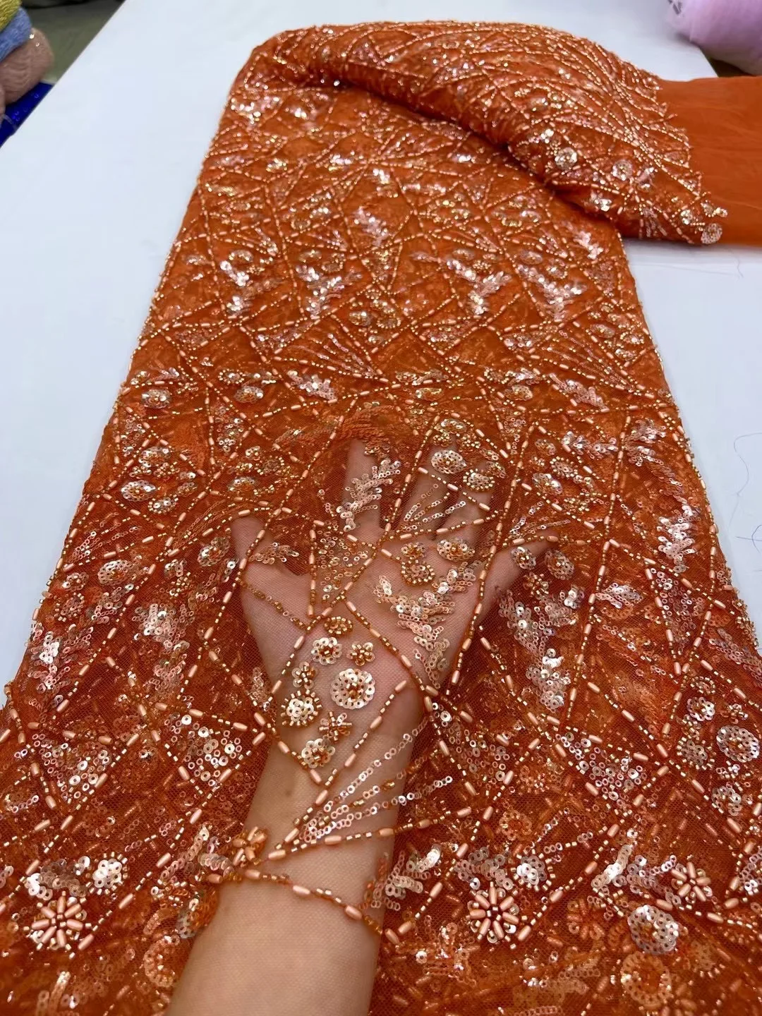 Rose Red Luxury Fashion Design Handmade Net Lace Beads With Sequins Super Top Quality Fabric For 5yards Party Evening Dresses