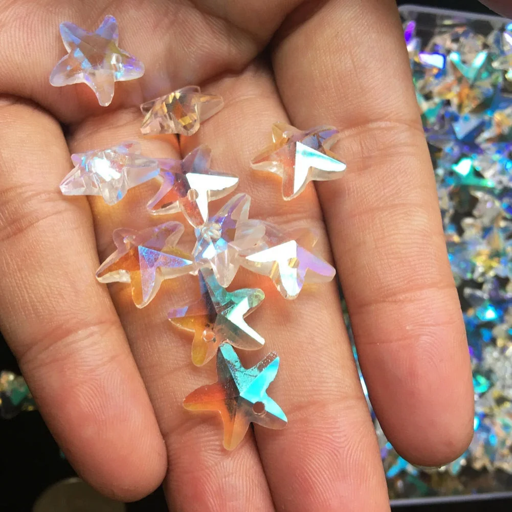 10Pcs Aurora Rainbow Starfish Crystal Beads parti del lampadario Suncatcher Art ciondolo a stella in vetro sfaccettato gioielli fai da te